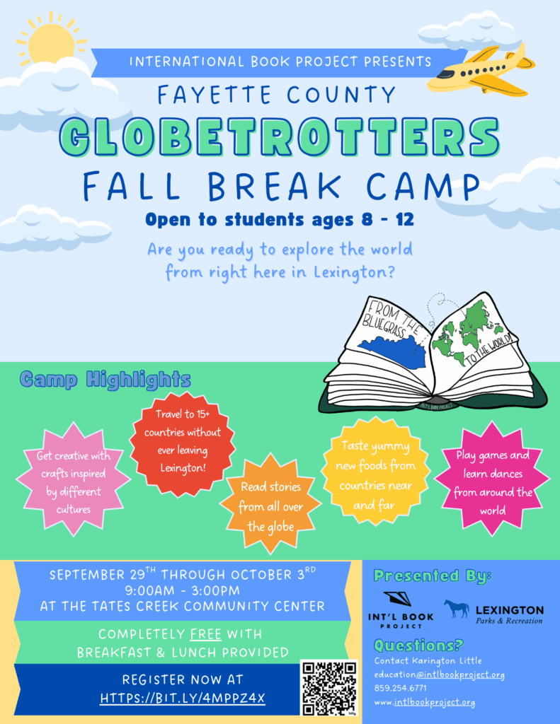 Globetrotters is a completely free, week-long program designed for students ages 7-13. Each day, campers will “travel” to a different region of the world, learning about other countries and customs through engaging books and stories, crafts, games, food tastings, and more! Our goal is for students to finish the week with a greater understanding of the vast, unique cultures and places of the world we all share. In addition to being completely free, Globetrotters camps also provide daily breakfast, lunch, and snacks.